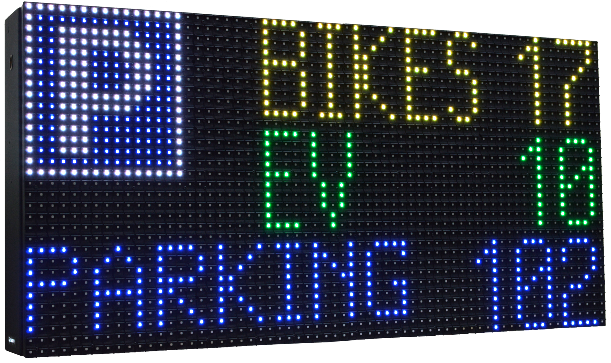 - LEDs: Array 128×96; 12288 pixels; Tricolor, R/G/B; Dot Pitch of 8MM.